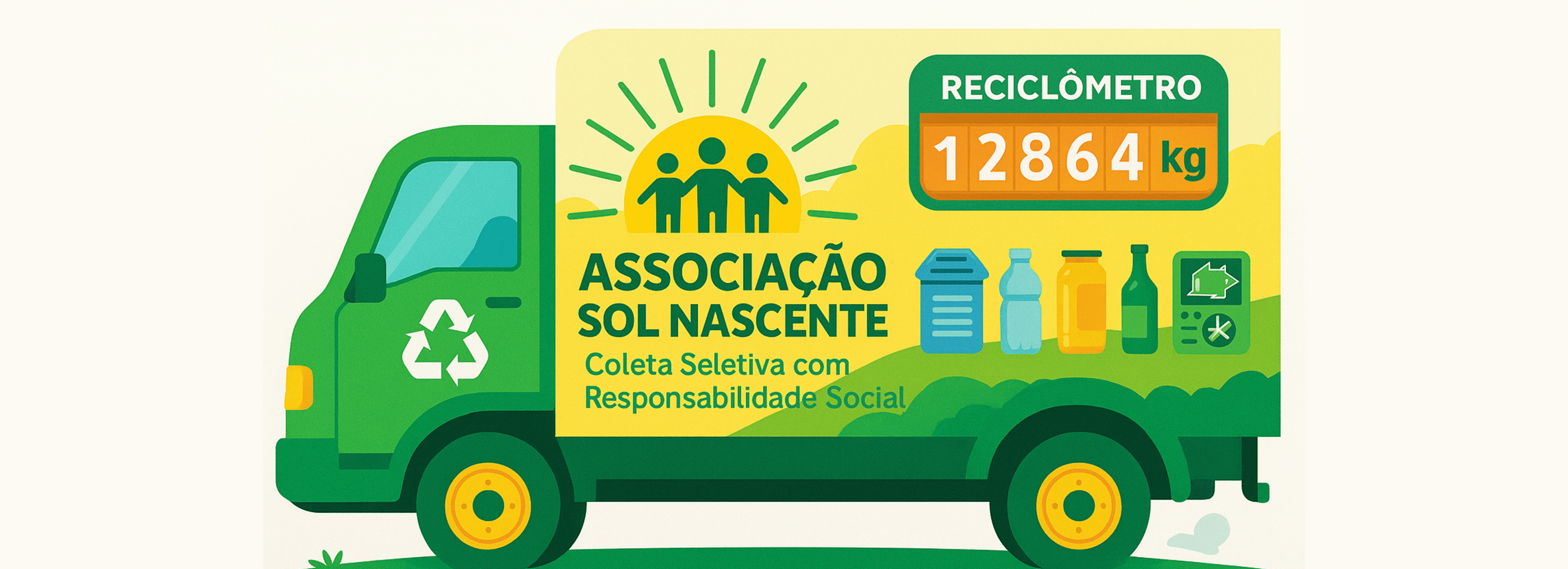 Trabalhamos com todos os materiais recicláveis (plásticos, papéis, papelão, metais e vidro) e óleo de cozinha.